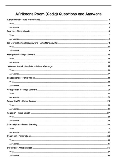 Read Afrikaans Poem Woorde Questions And Answers Kindle Editon